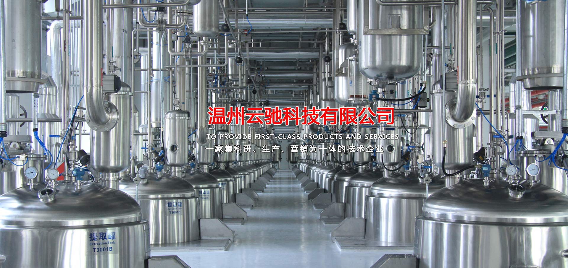 溫州云馳科技有限公司是一家集科研、生產(chǎn)、營銷為一體的技術(shù)企業(yè),本公司生產(chǎn)的中藥提取、濃縮、蒸發(fā)及有機溶媒回收設備,衛(wèi)生級不銹鋼容器設備,衛(wèi)生級管道配件等系列產(chǎn)品,范圍涵蓋制藥工程、乳品工程、生物工程、化工工程等領(lǐng)域,目前,本公司產(chǎn)品包含八大系列和28類品種,分別為中藥提取設備、濃縮設備、純化分離設備,酒精回收設備,配液系統(tǒng)設備,食品乳品機械設備,不銹鋼容器設備以及輔助配套設備等,力爭為廣大客戶提供滿意的交鑰匙工程服務,目前,本公司已與多家科研院所及相關(guān)設計單位、行業(yè)協(xié)會、技術(shù)專員合作,建立了完善的科研開發(fā)體系,技術(shù)力量雄厚,擁有先進的質(zhì)量保證體系,我們將打造一支素質(zhì)高,技術(shù)精,服務熱情的職業(yè)化隊伍,為廣大客戶解決設備工藝上的需求和難題并為廣大客戶提供優(yōu)質(zhì)的服務。